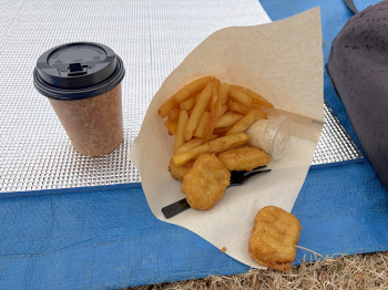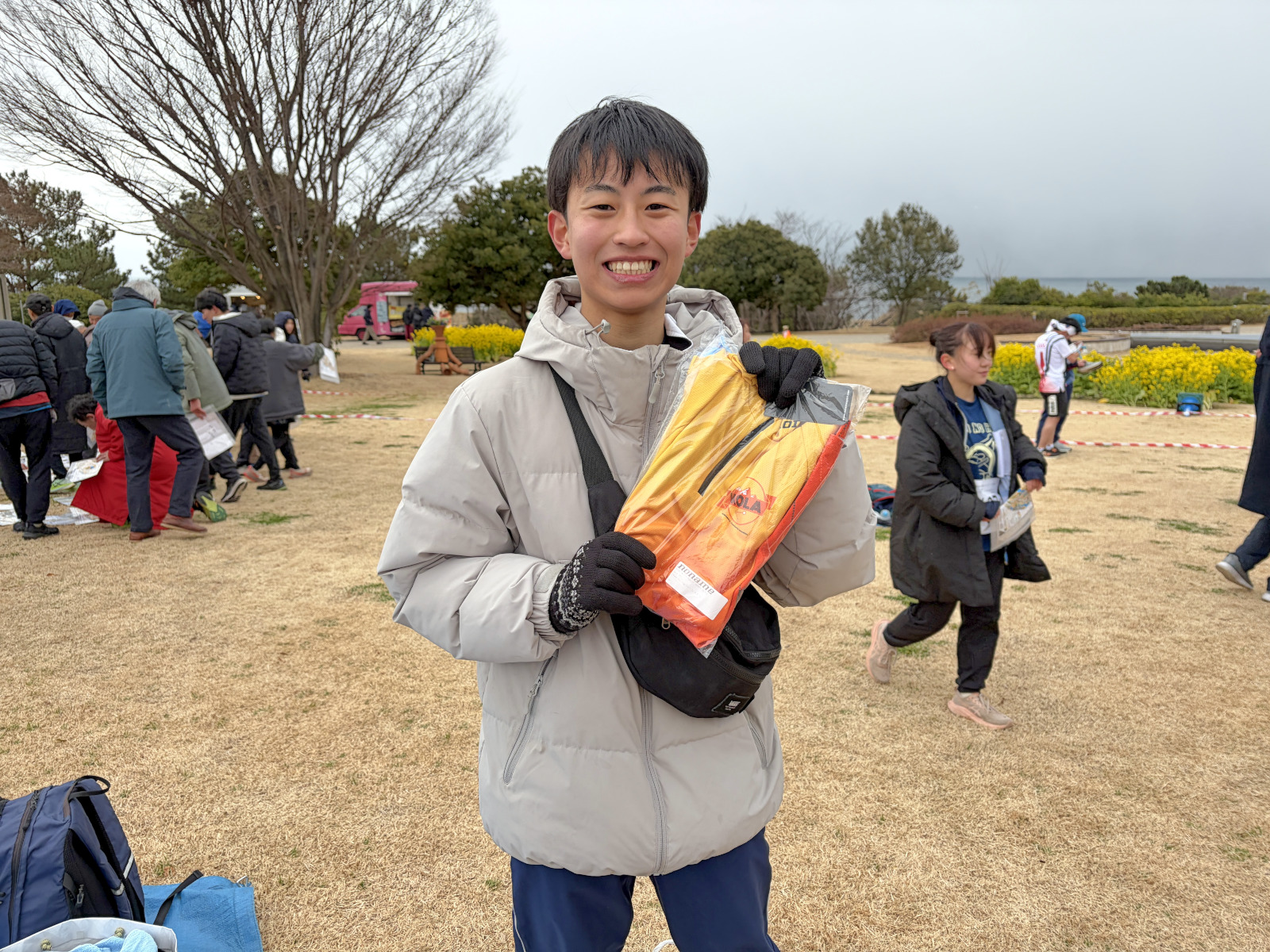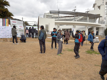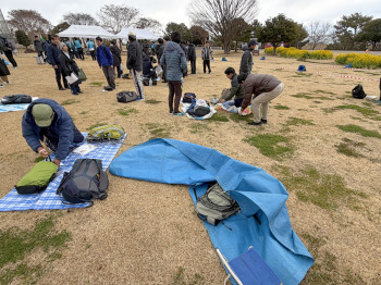 風が強く、気を抜くと荷物が飛ばされる。 |