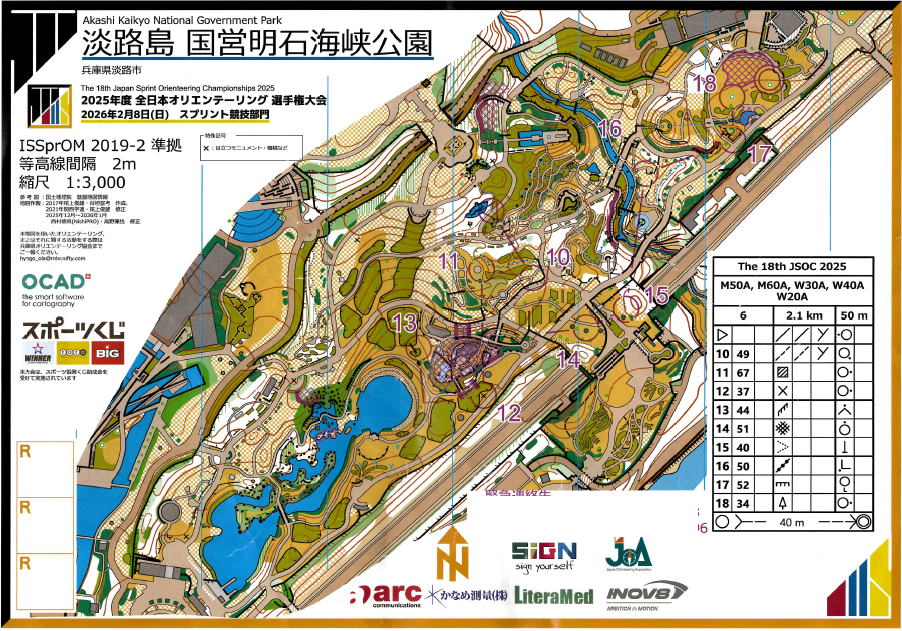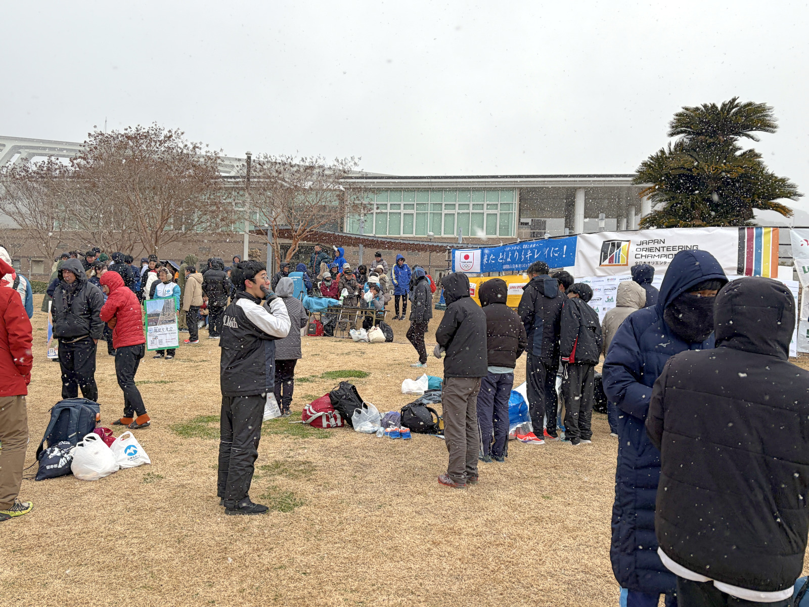 2マップ方式なのだが、10から15のコースが、 いたるところに通行不可の印があり、 目の前にコントロールがあるのに どう行くかわからずうろうろ。 18/30位と撃沈(^_^;)。 降りしきる雪の中、無事大会は終わりました。 |