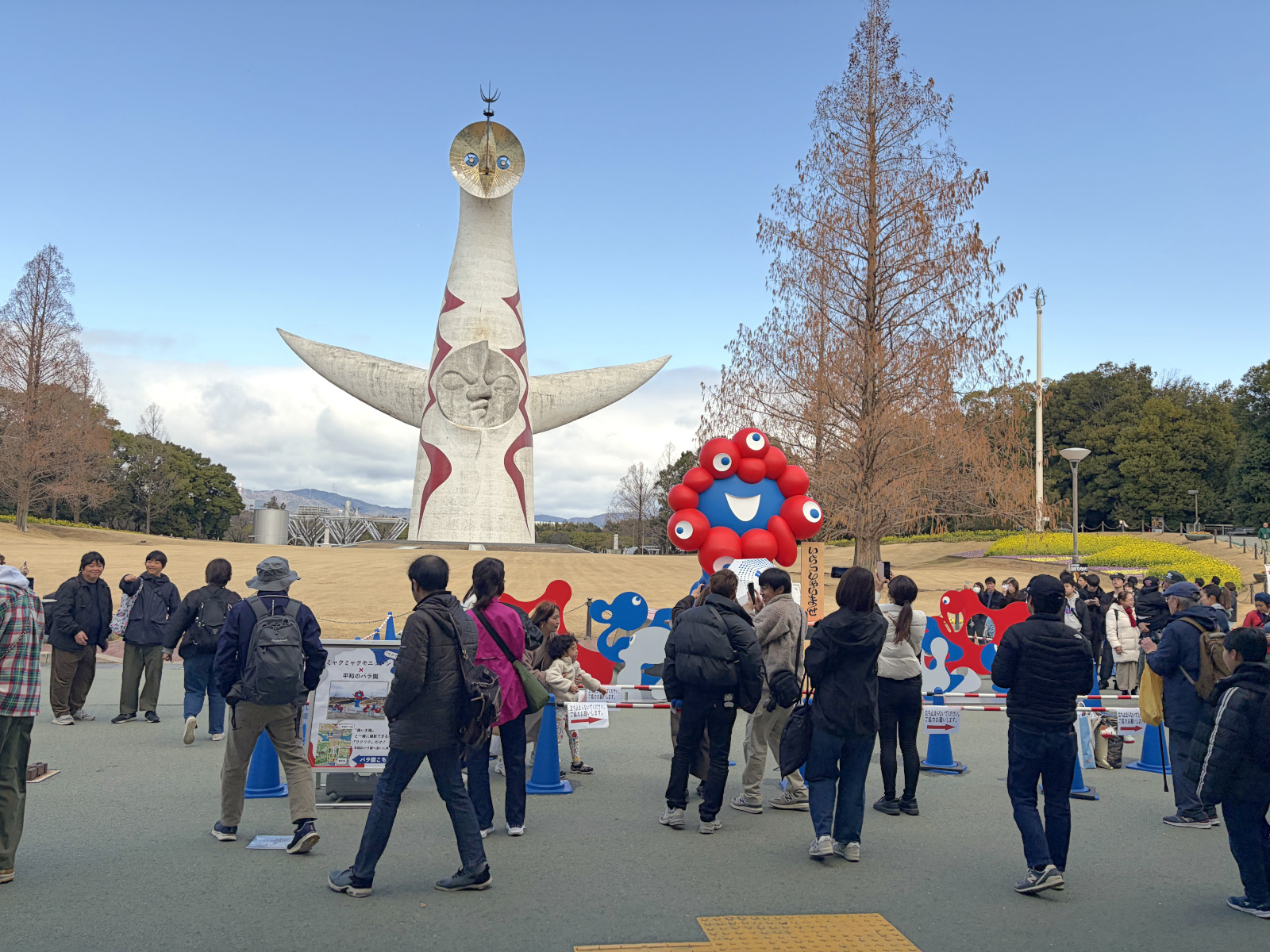 | 1970年と2025年万博の ダブルシンボルを撮るため、 行列が出来ていました。 |