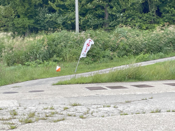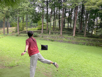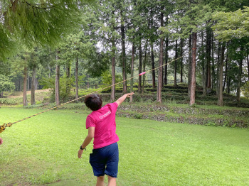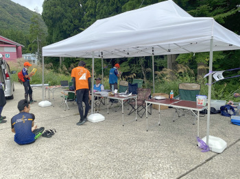 翌朝、朝食を終えてトリムに着替え、 いざ会場にと思ったところで、 「雷雨中止」 の連絡が入りました。 昨晩からの雷雨で、運営も苦渋の決断。 仕方ないですね。 |