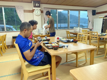 宿では、 翌日のレースのため 英気を蓄えています。 |