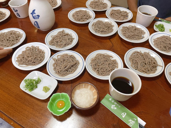 出石も、大勢の人が来ていました。 入った蕎麦屋には、 ふるはうすの面々も来ていました。 |