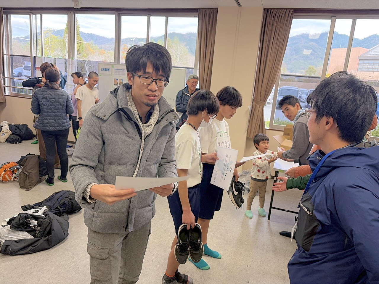 | 参加は、西村、古田、鞆、小林の4人。 3名は初のオリエンテーリング大会です。 |