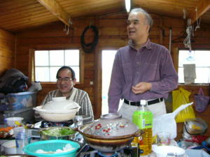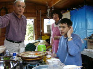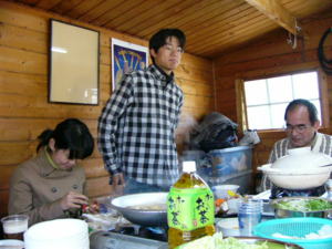 KOLAハウスの中で鍋をつついて、