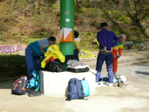 | 地図は、事前申込者分だけを事前に印刷。 当日申込者は、その場でプリントアウトする という荒技。 今回のコース設定は、白川氏。 さて…? |