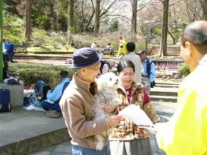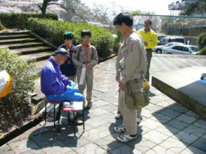 | 本日は、桜もみごろ。 狭い駐車場は、 多くの花見の人で、ごった返していました。 |