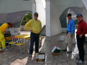 3日ほど前の天気予報は「雨」。 ところが、予報が後にずれこんで、 当日は、風が強いものの、 暑いくらいの良い天気に恵まれました。 8時30分にKOLAハウスに集合して、 大会の準備開始。 |