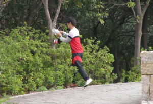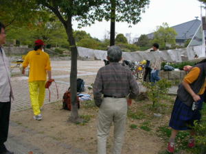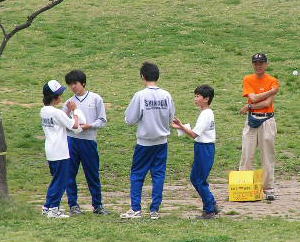 信太中学のクラブ員も 公園内で迷っていて、ようやく到着。 |