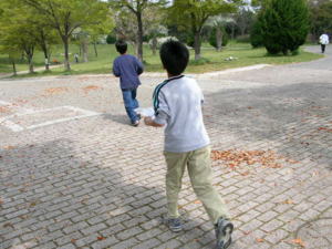 | 「マラソンは速いねんで」と 自信たっぷりの小学生でしたが、 探し回るオリエンテーリングは、 勝手が違います。 |