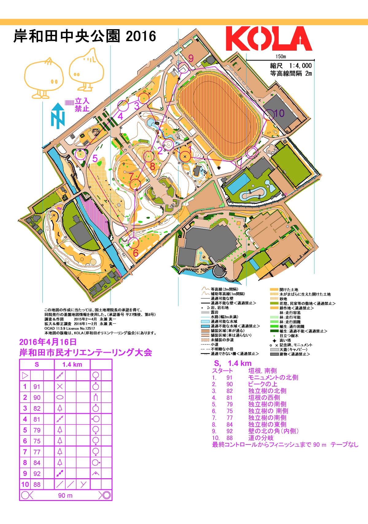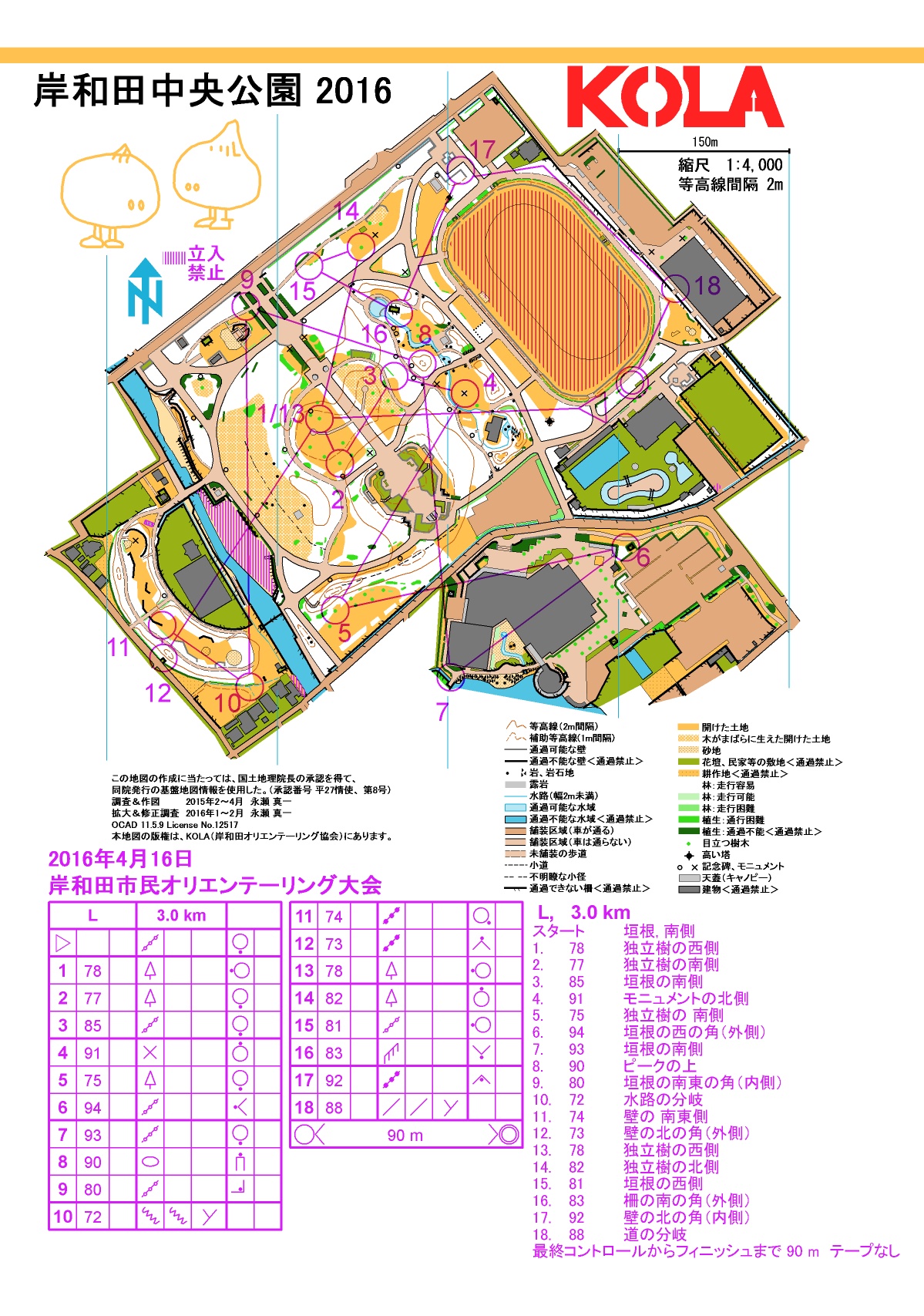 2016年 KOLA 岸和田市民オリエンテーリング大会 2016年4月16日 in 岸和田中央公園