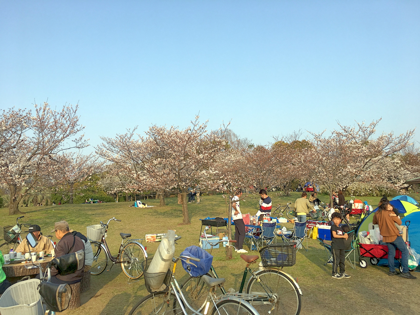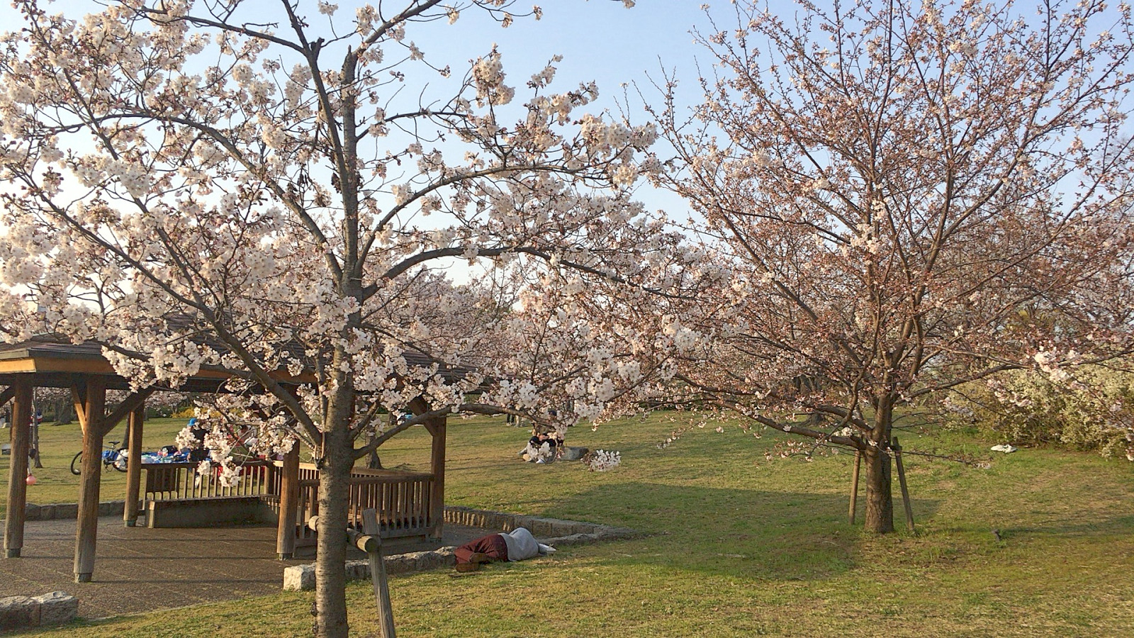 公園の桜は満開です。
