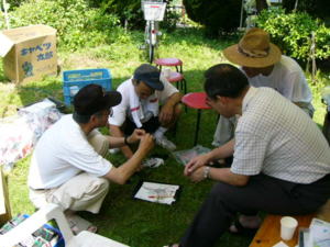 当日は、午前中から準備開始。 今回は、KOLAハウス[強宅]が 拠点と言うことで、荷物を運んだりの 手間がなく、かなり楽ですね。 |