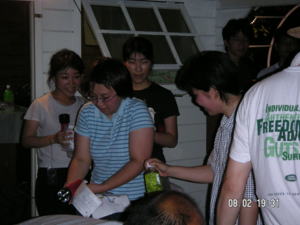 | 6時過ぎに参加者が続々到着。 今回は、総勢14名。 ちょっと寂しいですが、KOLAのメンバーは、 大会そっちのけで、宴会モードに 入っていました。 |