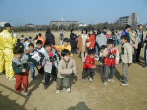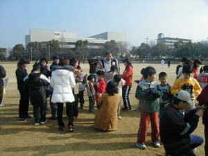 さて、スタートです。 ダッシュで出発するちびっ子たち。 時間は、20分間ですが、 全部見つけることができるでしょうか。 |