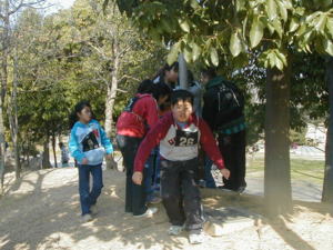 | やっとゴール。 最短は17分でしたが、 ほとんどの組は全部回っていました。 最終組は、40分以上かかっていました。 やっぱり途中で全部見つかっていないのに 帰ってこれないですよね。 |