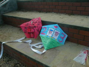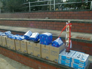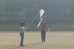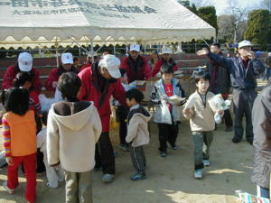 前半の凧揚げでは、 みんな元気に走り回っていました。 今回は風がなく、 みんな苦労していました。 優秀者には、 左の景品が! |