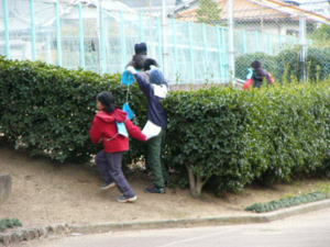 探し回って、大変だ〜。 「あったよ〜」と、あちこちから歓声が。 「あっ、これははずれだ!」 |
