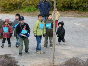 さて、スタートです。 ダッシュで出発するちびっ子たち。 時間は、30分間ですが、 全部見つけることができるでしょうか。 |