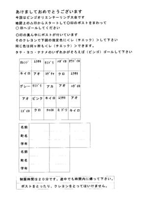 毎年お手伝いしている地区の子供会の活動の様子です。今回は、クレヨンを使ってのビンゴ−Oです。
