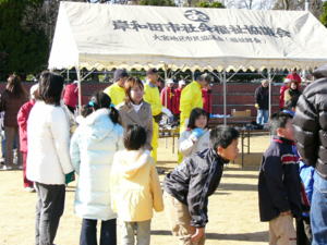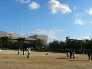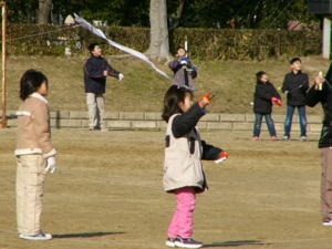 まずは、たこ揚げ大会。 今回は、風もあって太陽も出ていて、 絶好のたこ揚げ日和。 |