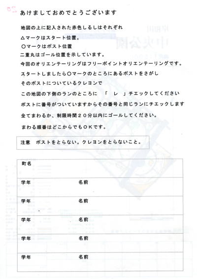 ・地図の裏に「町,名前,学年」を書く。