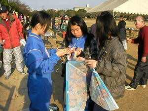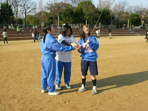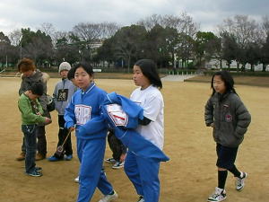 | 今回は、スキー野外活動部としても 凧を用意。(市販のものですが) オリエンテーリングまでの時間を 凧揚げをして楽しみました。 |