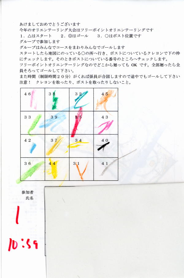 今回は、クレヨンを使って、フリーポイントオリエンテーリングです。