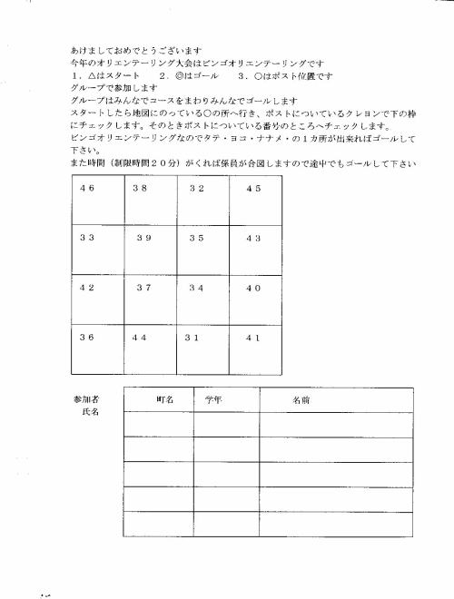 | いよいよ、オリエンテーリングの開始です。 まず5人一組になってのチーム分け。 各町ごとにわかれて、総勢22チーム! [スタート前の説明] ・ゼッケンをつける ・地図の裏に「町,名前,学年」を書く。 ・ポイントを見つけてクレヨンチェック。 ・現在地の確認 ・全部になったら、ゴールに向かう。 |