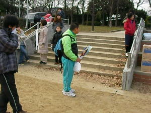 まずは、たこ揚げ大会。 今回、KOLAからは 寺田強,横田の2人が参加。 オリエンテーリングの練習として スキー野外活動部から 西中,小倉,岩元,岡本も参加。 |