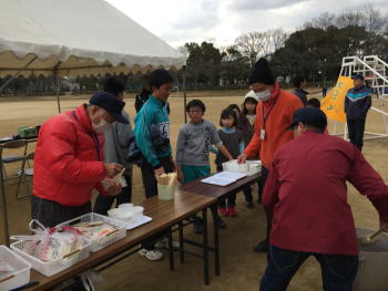 時間内に、すべて回れたチームは 2チームだけでした。 オリエンテーリングの後に、 ぜんざいを頂きました。 |