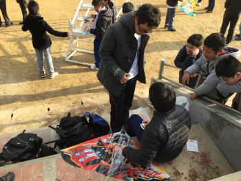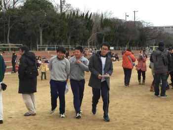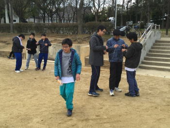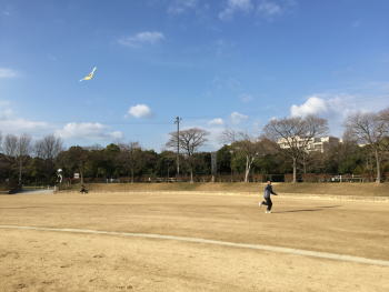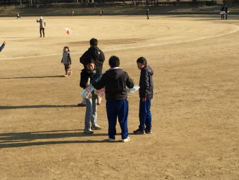| 今回は、スキー野外活動部としても 凧を用意したのですが、風もなく なかなか上がらなく、糸も 絡んでしまいました。 人生初の凧揚げに挑んだ子もいました。 |