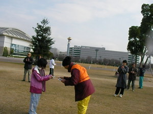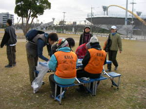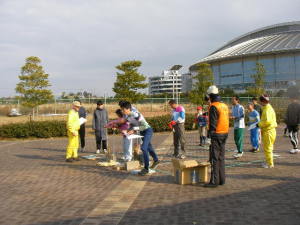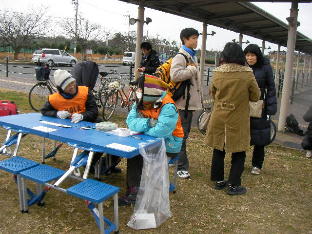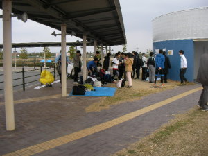 集合地点の様子です。若干の屋根はありますが、青空会場です。