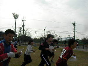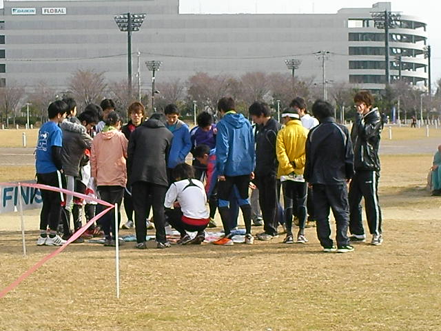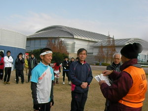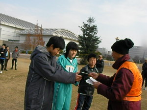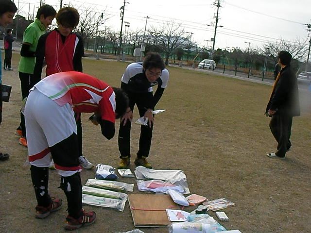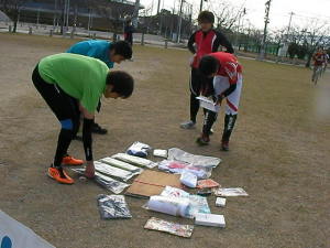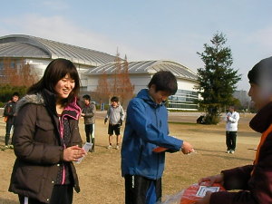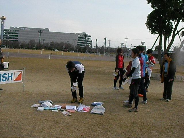フィニッシュ後に賞品を選ぶ参加者たち。 |