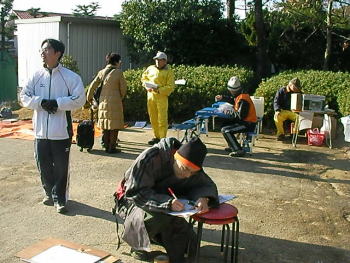 | 12:20 一斉スタート。 10名ほどの予定だったのですが、 40名近くの希望者がいたので 用意していた20枚の地図を全部使っての 参加者選定。 選に漏れた人、申し訳ございません。 |