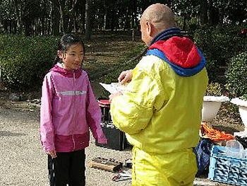 表彰の用意が出来るまでに、 KOLA恒例のお楽しみレース。 急遽、201コントロールを排除してのレースに なりましたが、5つのうち、3つをとってくる スピードレース。 早く帰ってきたものから、好きな賞品をもらえます。 スタート前に賞品選びをする参加者たち。 |