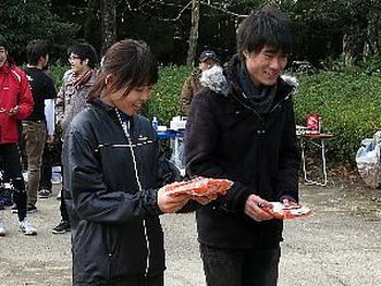 | フィニッシュ後には、 無料ぜんざいふるまい。 一部には、おでんもと伝えてしまって、 用意をしていずに申し訳ないm(_ _)m。 今日は天気も良くて、暖かくて何よりでした。 |