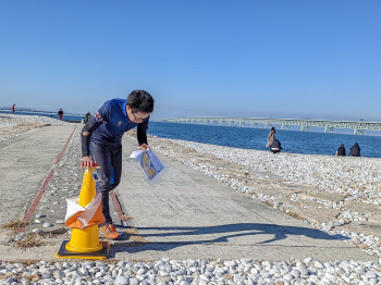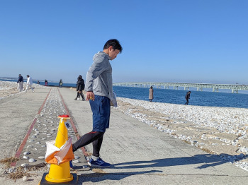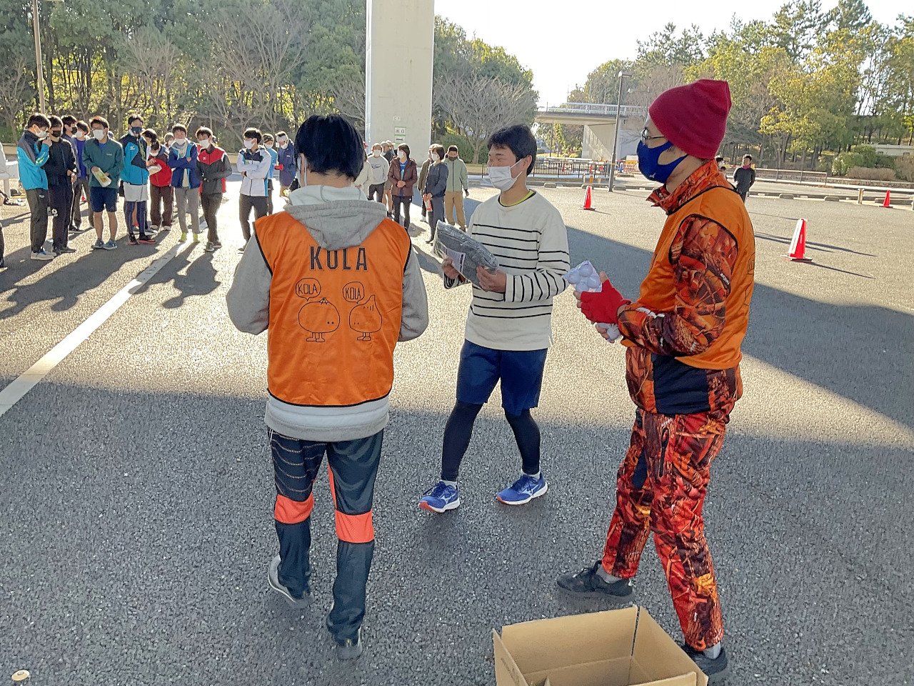 | 今日は、天候が抜群。 いいレースが期待できそうです。 大会に先立ち、村本くんに KOLAトリムを進呈。 ようやく渡せました。 KOLA入会は、大歓迎です。 新入会員にはトリムをプレゼントしています。 |