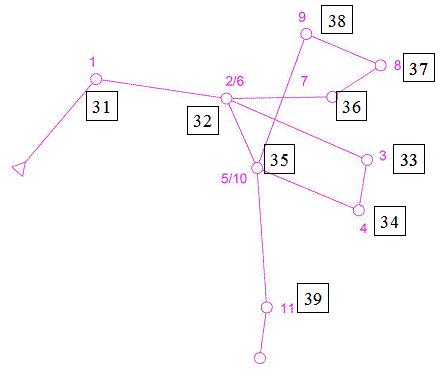 ・MA、WA、MS、W40、MV、MJ、WJクラスは、 バタフライループによるコースバリエーションがあります。 ・バタフライループの例 @(31)、A(32)の順番にまわり、ここでバリエーションが別れます。 B(33)、C(34)ととり、D(35)で合流(別パターンはEですが)。 次は、E(32)<ここで、J(39)に直行しないよう注意> その次は、先ほど行かなかった、F(36)、G(37、H(38))を順に廻り、 2回目のI(35)をとって、J(39)へ ![]() ※注意事項 ・1つのコントロールからレッグ線が何本もでています。 次に向かうコントロールをよく確認しましょう ・前の人は、コースバリエーションが違うかもしれません。 まどわされないようにしましょう。 (31)-(32)-(36)-(37)-(38)-(35)-(32)-(33)-(34)-(35)-(39)と 廻るバリエーションもあります。 |