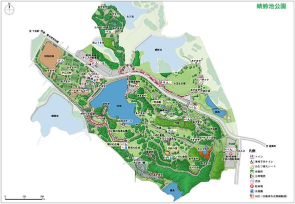 【地 図】「とんぼ池公園」(KOLA作成、わずかながら範囲拡大)プリンタ出力