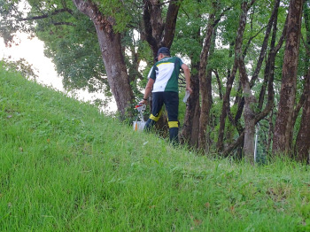 午前中は、土砂降りの雨。