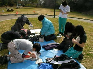 リレー形式のオリエンテーリング大会。 スキー野外活動部としては、 数年ぶりの参加。 大学生チームに混じって、 完走を目標に頑張ります。 |