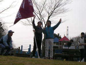 | ようやく高橋くんが戻ってきて、 第2走の坂辺くんがスタート。 13:30のリスタートに引っかかった 吉田さんが、その後すぐにスタート。 |