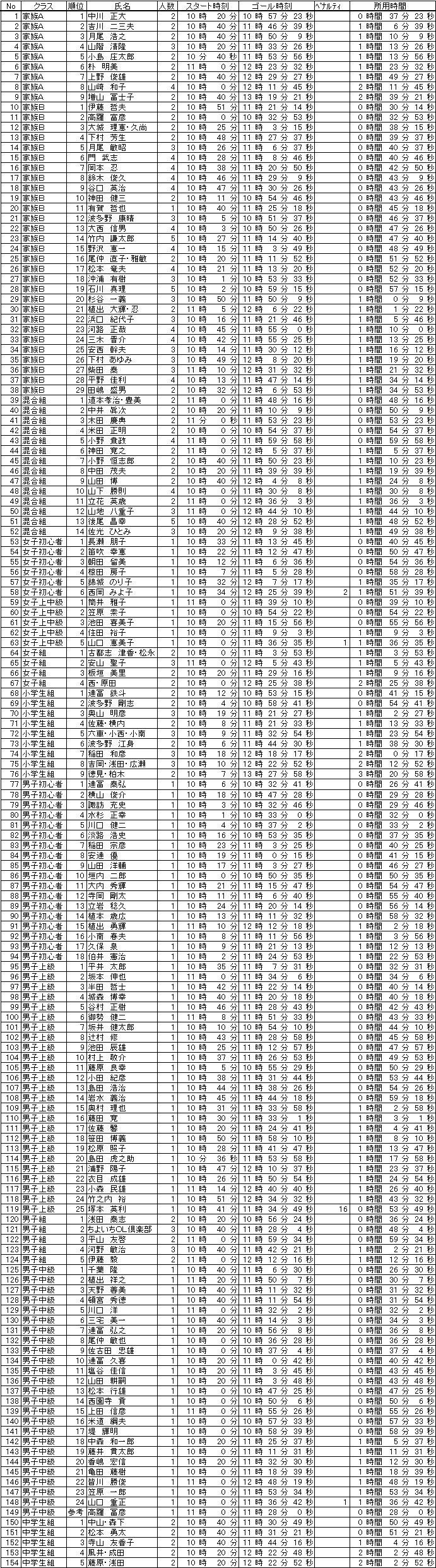 [訂正&補完] ・スタート時間の間違っていた男子上級クラスの御勢さんを、24位から6位に訂正 ・男子中級の高羅さんは、一度家族Bクラスで走っているために順位に入れずに「参考」とさせていただきました。
