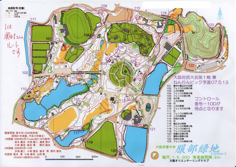 下は、優勝した奥村さんが走ったルートです。反時計回りに101-111-102-----と回っています。