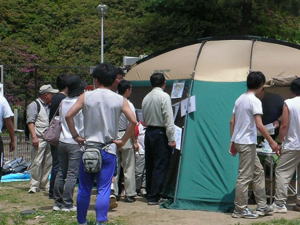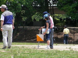 今回は、60分制限の スコアO形式です。 ねんりんピックの府・大阪市・堺市の 選考会も兼ねているので同じ形式で 行ってみました。 制限時間内に多くのコントロールを 回ってきた人が勝ちです。 写真は、ゴールでのパンチシーンです。 |