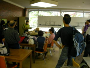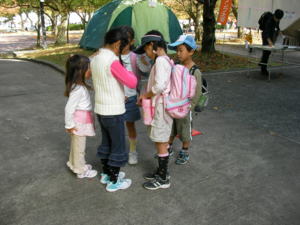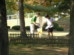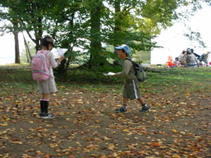 | 地図の見方、コンパスの使い方を 聞いて、大会の予習です。 |
