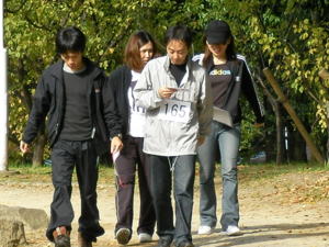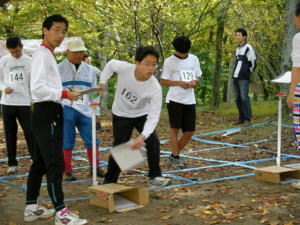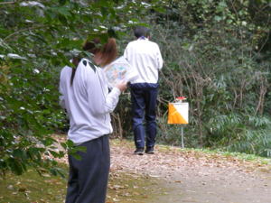 各クラス、1分間隔でスタートしました。 地図を見て、確認する人や まずスタートダッシュをする人も。 |