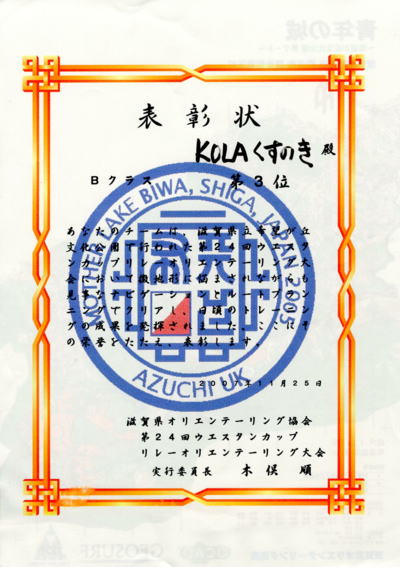 | 表彰式の様子。 なんと、KOLAくすのきは Bクラス3位に入賞。 |