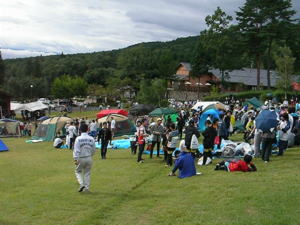 | 7時30分。テント設営。 なんと、まだスペクターズコントロールの 真ん前が空いていたので、 そこにテントを張って、準備完了。 |