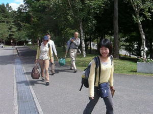 参加者もぞくぞく到着。 このときは、まだ天気も良かったのですけど。 |